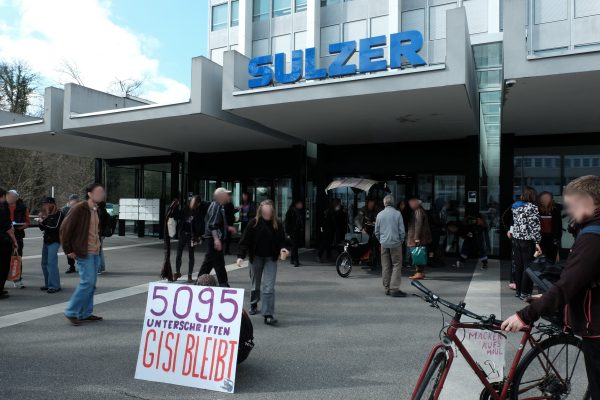 Heute Donnerstag 12.3.2026 versammelten wir uns um 14 Uhr mit über 80 Personen vor dem Sulzer-Hochhaus, dem Sitz der steuerbefreiten, milliardenschweren Immo-Stiftung SKKG.