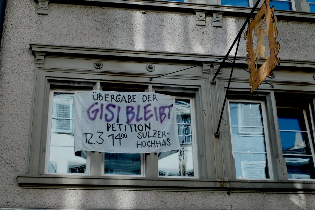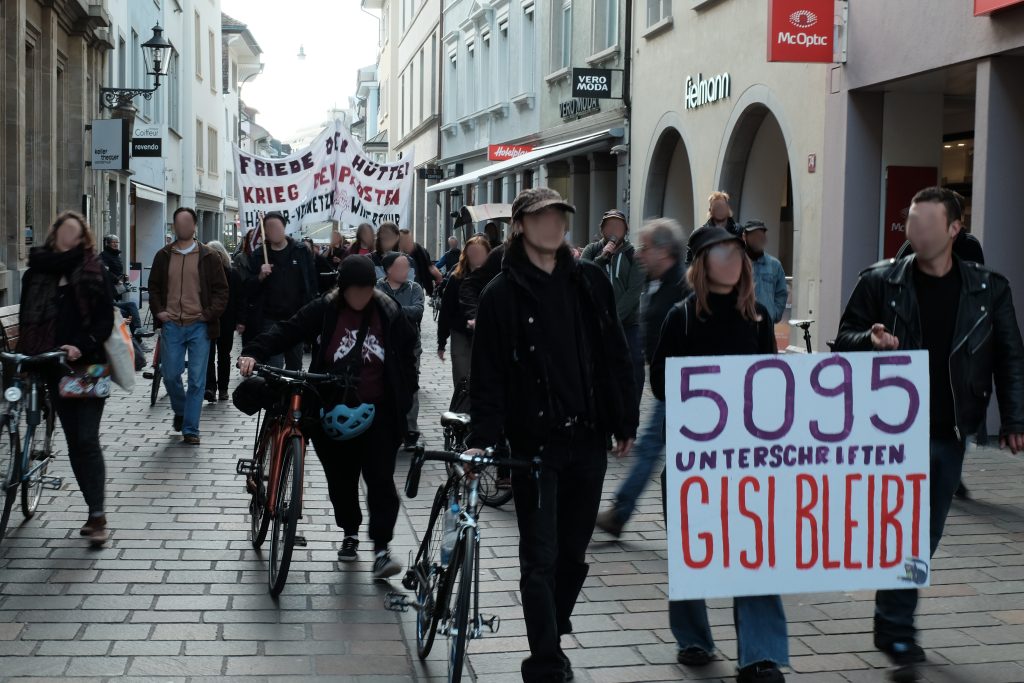 Die angedrohte Räumung der Gisi ist nicht nur ein Angriff auf ihre Bewohner:innen. Sie ist ein Angriff auf uns alle, uns alle, die immer grössere Teile unseres Einkommens für Miete ausgeben müssen, die keine zahlbaren Wohnungen mehr finden, die sich gegen den kapitalistische Aufwertungswahn wehren.