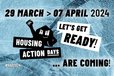 Die Housing Action Days werden in vielen Städen in Europa als Aktionstage für das Recht auf Wohnen und das Recht auf Stadt, gegen Wohnungsnot, Vertreibung und Repression gegen Obdachlose und Hausbesetzer:innen durchgeführt. Aufgerufen wird durch die European Action Coalition. Den Aufruf findet ihr auf ihrer Homepage: housingnotprofit.org