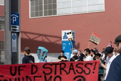 Wenn wir die Stadtaufwertung als einen Ausdruck der kapitalistischen Profitmacherei begreifen, fällt es uns auch leichter die Entwicklung in unseren Quartieren in einen Zusammenhang mit all den Angriffen auf unsere Lebens- und Arbeitsbedingungen zu setzen. Und daraus den Schluss zu ziehen, dass Widerstand gegen die herrschenden Zustände dringend notwendig ist und dass der Kapitalismus nicht irgendwie «verbessert» sondern abgeschafft gehört. Diese Frage der Entwicklung einer revolutionären Perspektive für eine Gesellschaft ohne Ausbeutung und Unterdrückung steht auch am 1. Mai im Vordergrund.